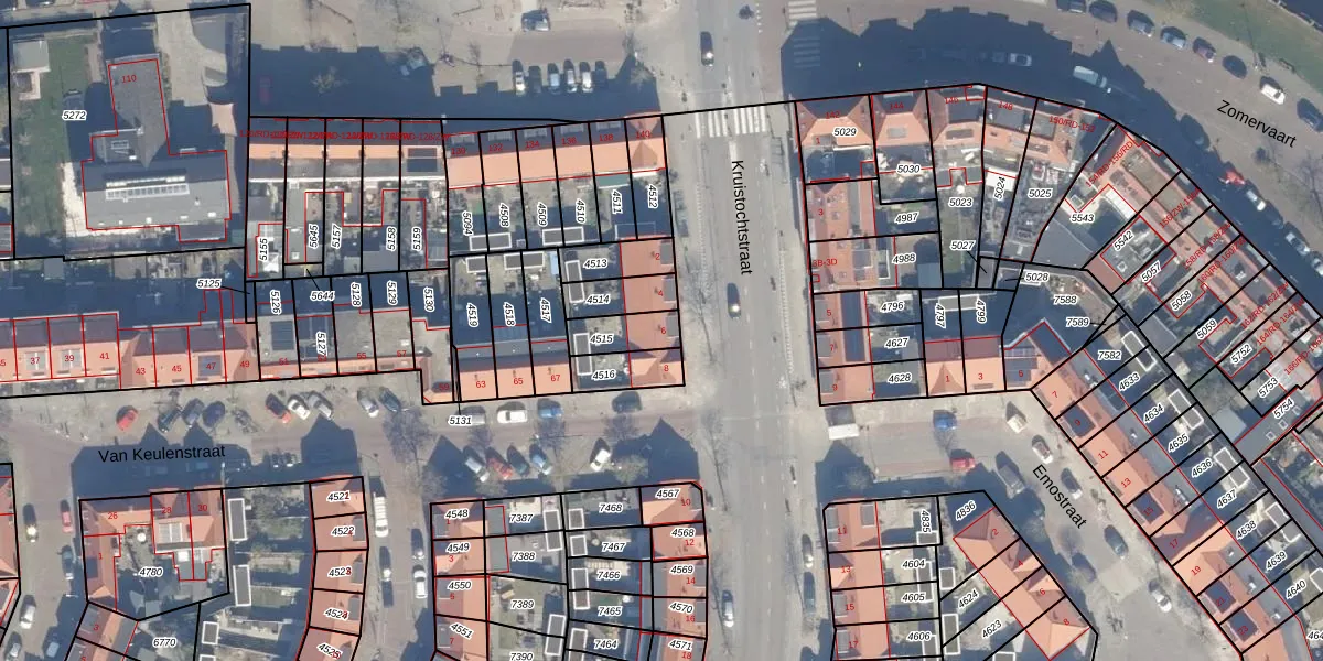 Gebruik de zoekbalk of klik op een perceel voor informatie over de adressen binnen dit perceel.
