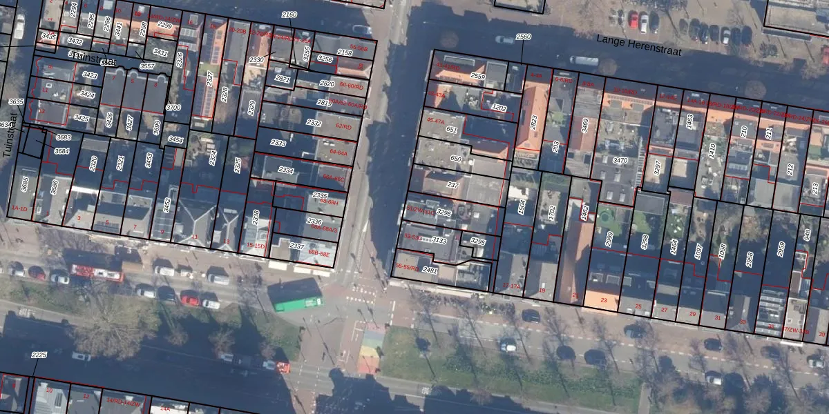 Het adres ligt op het perceel HLM01-B-3296, dat zich in de kadastrale gemeente Haarlem bevindt. Het perceel is kleiner dan gemiddeld in Haarlem. Het perceel is 161 m² groot, terwijl het gemiddelde ligt op 328,37 m². De grootste perceeloppervlakte in de kadastrale gemeente is 13,9 ha. De kleinste oppervlakte bedraagt 0 m². Er zijn 4 adressen aanwezig op het perceel. De huidige grenzen van het perceel zijn digitaal in de Basisregistratie Kadaster (BRK) geregistreerd op 28-11-1997.