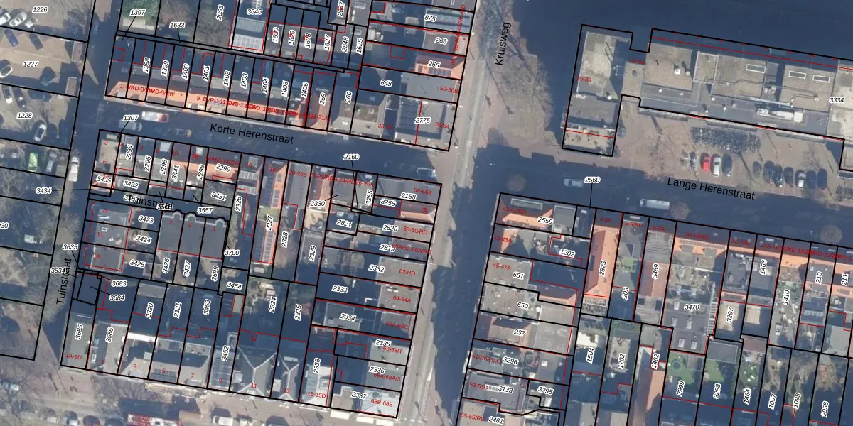 Het perceel waarop Kruisweg 58 staat heeft een oppervlakte van 68 m². Dit is een klein perceel. De perceeloppervlakte wordt geregistreerd door het Kadaster. Gedetailleerde informatie over de maten van dit perceel kunt u vinden in het rapport Kadastrale kaart met maatvoering van Kruisweg 58.