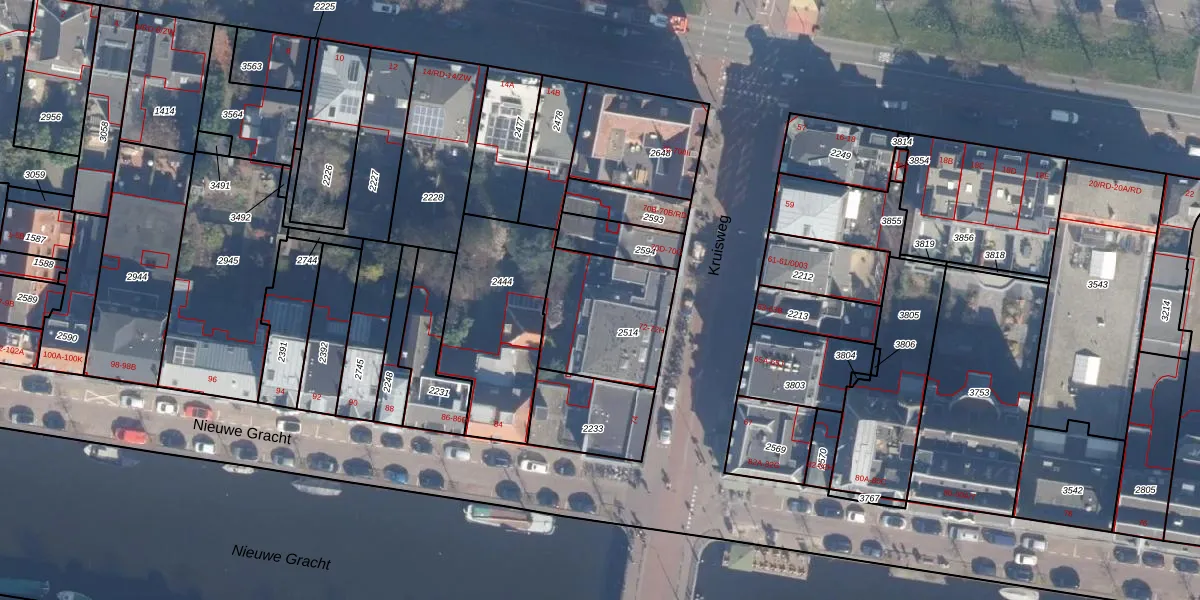 Kruisweg 72-B is gelegen op kadastraal perceel HLM01B2514. Deze kadastrale aanduiding is uniek en wordt gebruikt door het Kadaster om eigendomsrechten en andere zakelijke rechten vast te leggen. Het perceel maakt onderdeel uit van de kadastrale gemeente Haarlem.