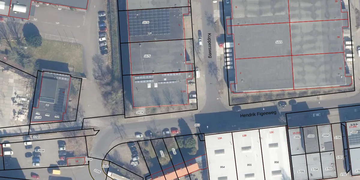 Kuppersweg 1 is gelegen op kadastraal perceel HLM02N1674. Deze kadastrale aanduiding is uniek en wordt gebruikt door het Kadaster om eigendomsrechten en andere zakelijke rechten vast te leggen. Het perceel maakt onderdeel uit van de kadastrale gemeente Haarlem.