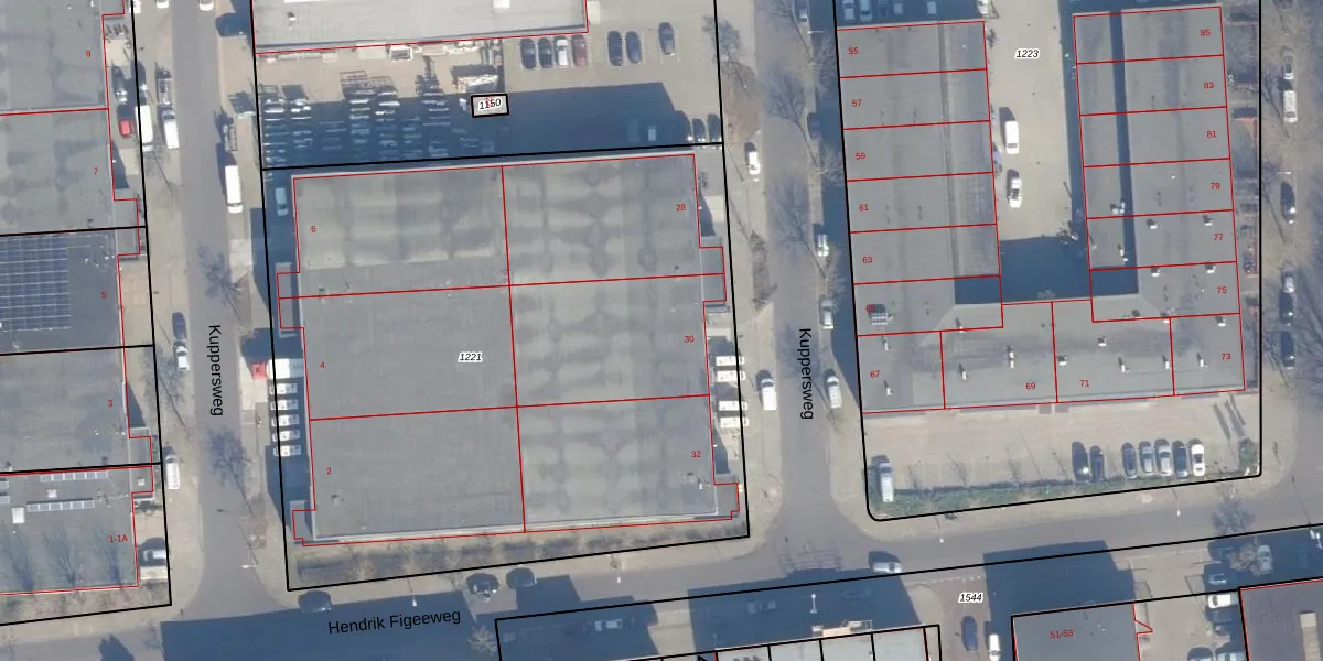 Kuppersweg 30 is gelegen op kadastraal perceel HLM02N1221. Deze kadastrale aanduiding is uniek en wordt gebruikt door het Kadaster om eigendomsrechten en andere zakelijke rechten vast te leggen. Het perceel maakt onderdeel uit van de kadastrale gemeente Haarlem.