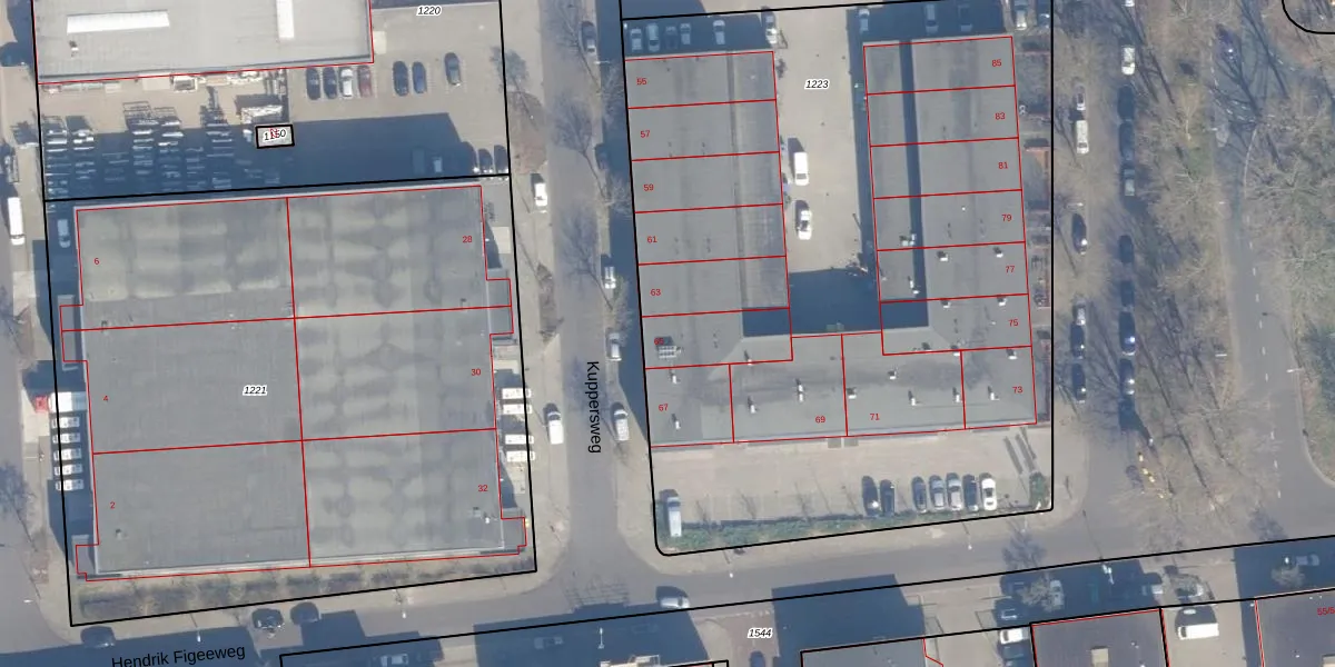 Kuppersweg 65 is gelegen op kadastraal perceel HLM02N1223. Deze kadastrale aanduiding is uniek en wordt gebruikt door het Kadaster om eigendomsrechten en andere zakelijke rechten vast te leggen. Het perceel maakt onderdeel uit van de kadastrale gemeente Haarlem.