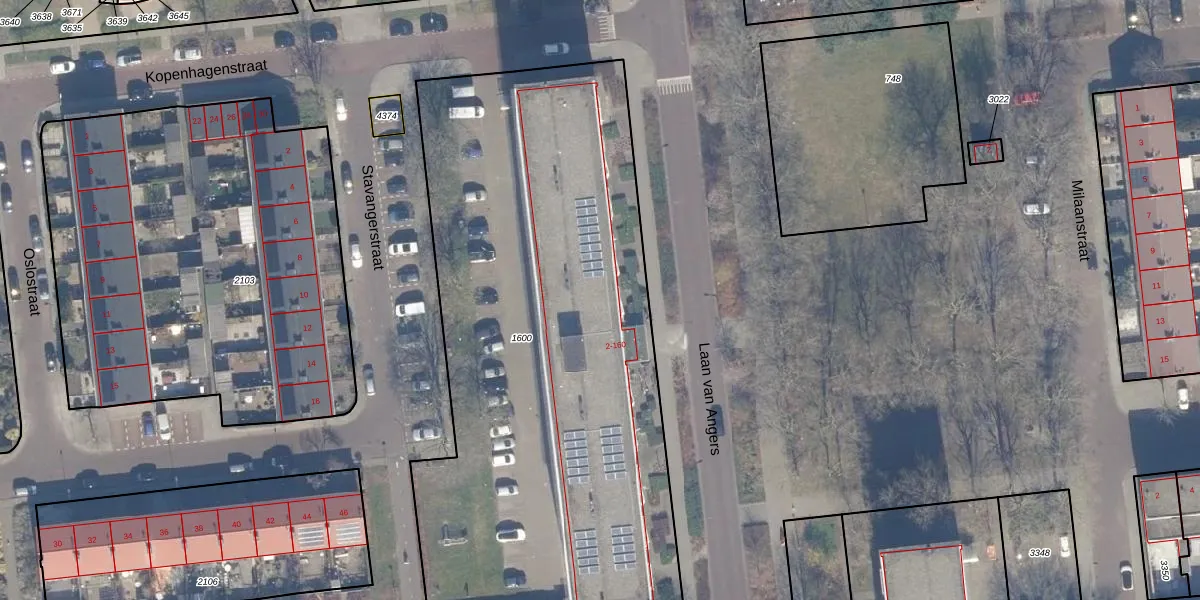 Laan van Angers 90 is gelegen op kadastraal perceel HLM02Y1600. Deze kadastrale aanduiding is uniek en wordt gebruikt door het Kadaster om eigendomsrechten en andere zakelijke rechten vast te leggen. Het perceel maakt onderdeel uit van de kadastrale gemeente Haarlem.