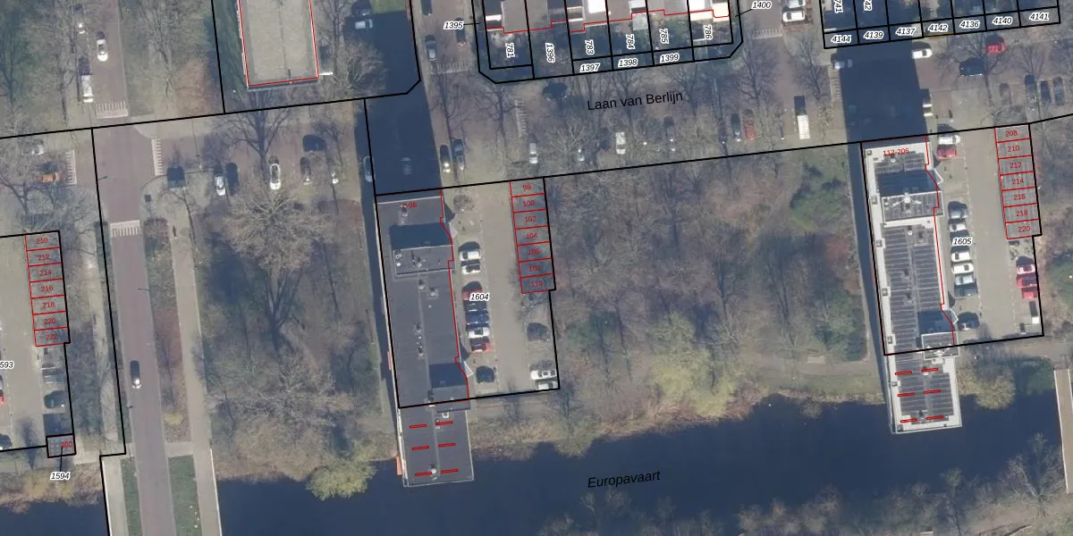 Laan van Berlijn 108 is gelegen op kadastraal perceel HLM02Y1604. Deze kadastrale aanduiding is uniek en wordt gebruikt door het Kadaster om eigendomsrechten en andere zakelijke rechten vast te leggen. Het perceel maakt onderdeel uit van de kadastrale gemeente Haarlem.