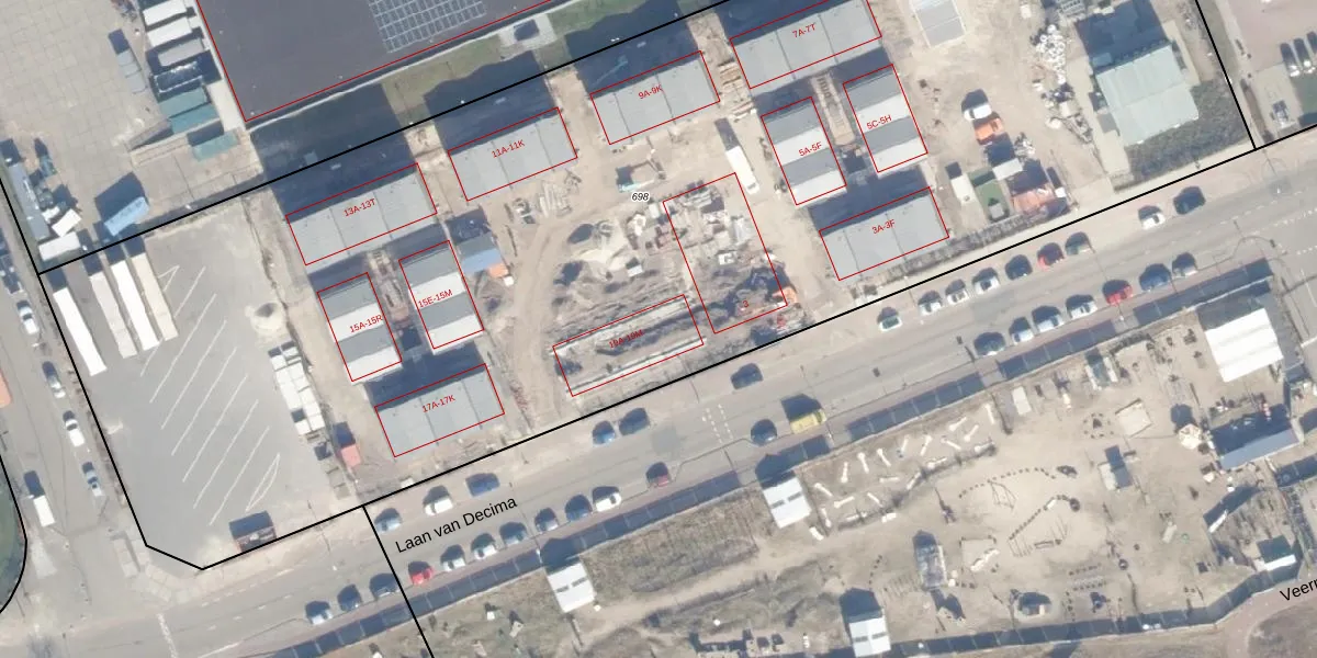 Het perceel waarop Laan van Decima 19-E staat heeft een oppervlakte van 8613 m². Dit is een zeer groot perceel. De perceeloppervlakte wordt geregistreerd door het Kadaster. Gedetailleerde informatie over de maten van dit perceel kunt u vinden in het rapport Kadastrale kaart met maatvoering van Laan van Decima 19-E.