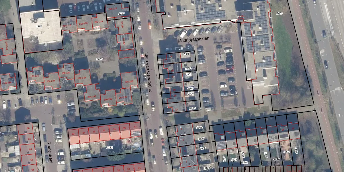 Laan van Osnabrück 1-D is gelegen op kadastraal perceel HLM02Y2804. Deze kadastrale aanduiding is uniek en wordt gebruikt door het Kadaster om eigendomsrechten en andere zakelijke rechten vast te leggen. Het perceel maakt onderdeel uit van de kadastrale gemeente Haarlem.