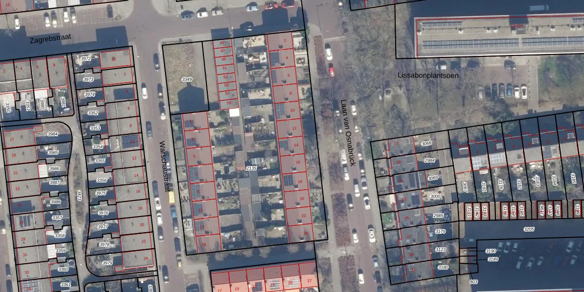 Het perceel waarop Laan van Osnabrück 14 staat heeft een oppervlakte van 3200 m². Dit is een zeer groot perceel. De perceeloppervlakte wordt geregistreerd door het Kadaster. Gedetailleerde informatie over de maten van dit perceel kunt u vinden in het rapport Kadastrale kaart met maatvoering van Laan van Osnabrück 14.