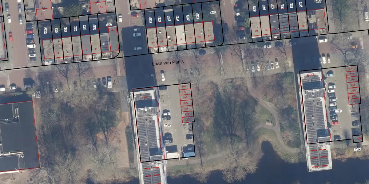 Laan van Parijs 102 is gelegen op kadastraal perceel HLM02Y1592. Deze kadastrale aanduiding is uniek en wordt gebruikt door het Kadaster om eigendomsrechten en andere zakelijke rechten vast te leggen. Het perceel maakt onderdeel uit van de kadastrale gemeente Haarlem.