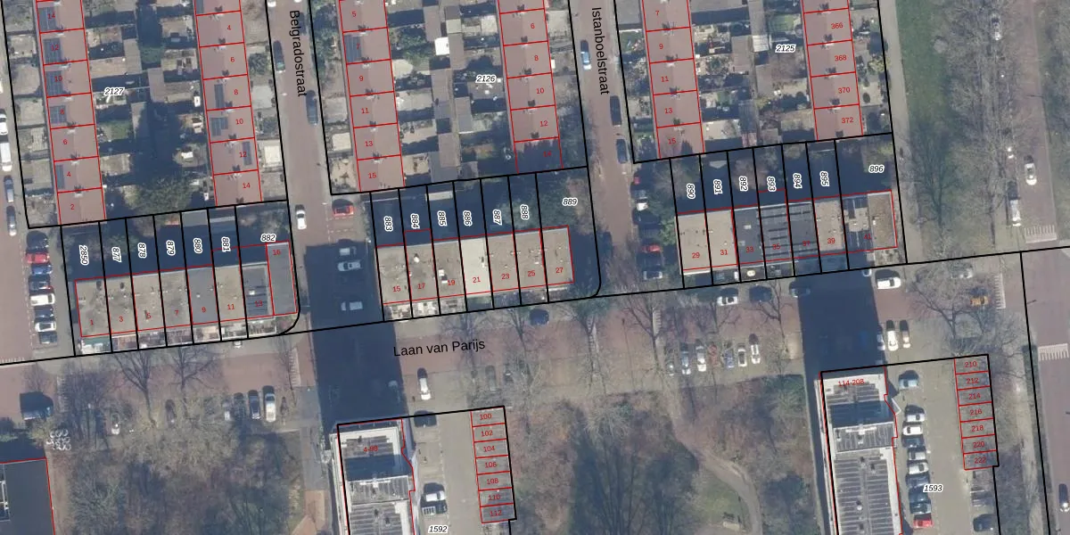 Het perceel waarop Laan van Parijs 25 staat heeft een oppervlakte van 127 m². Dit is een middelgroot perceel. De perceeloppervlakte wordt geregistreerd door het Kadaster. Gedetailleerde informatie over de maten van dit perceel kunt u vinden in het rapport Kadastrale kaart met maatvoering van Laan van Parijs 25.