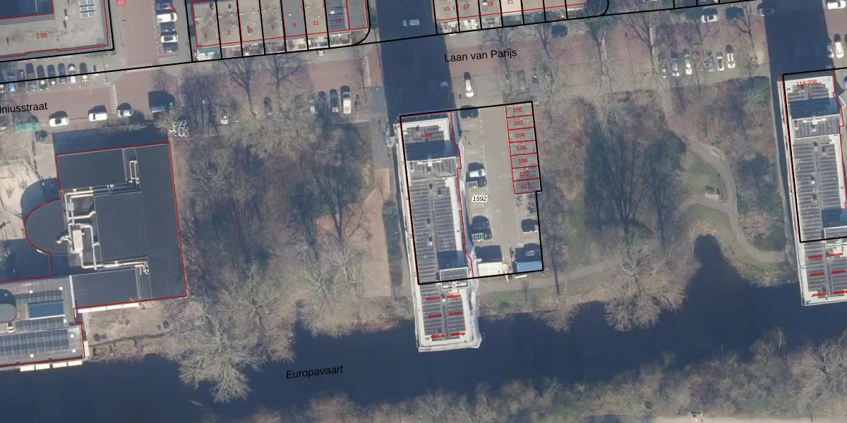 Het perceel waarop Laan van Parijs 82 staat heeft een oppervlakte van 1224 m². Dit is een zeer groot perceel. De perceeloppervlakte wordt geregistreerd door het Kadaster. Gedetailleerde informatie over de maten van dit perceel kunt u vinden in het rapport Kadastrale kaart met maatvoering van Laan van Parijs 82.
