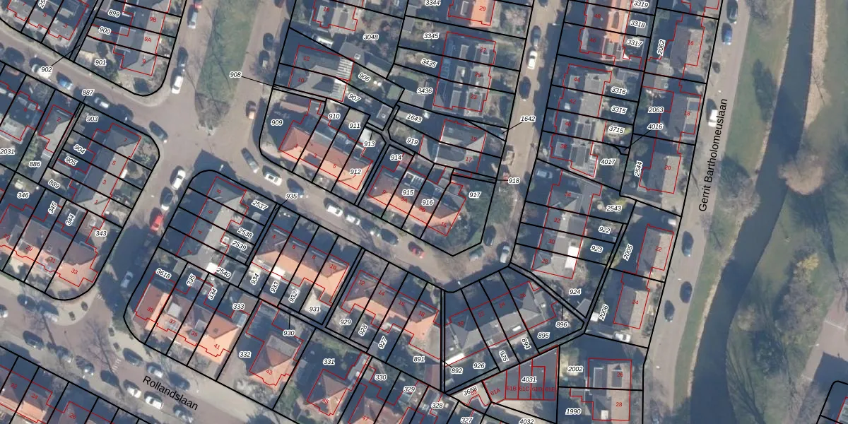 Het perceel waarop Lambrecht van Dalelaan 9-B staat heeft een oppervlakte van 91 m². Dit is een klein perceel. De perceeloppervlakte wordt geregistreerd door het Kadaster. Gedetailleerde informatie over de maten van dit perceel kunt u vinden in het rapport Kadastrale kaart met maatvoering van Lambrecht van Dalelaan 9-B.