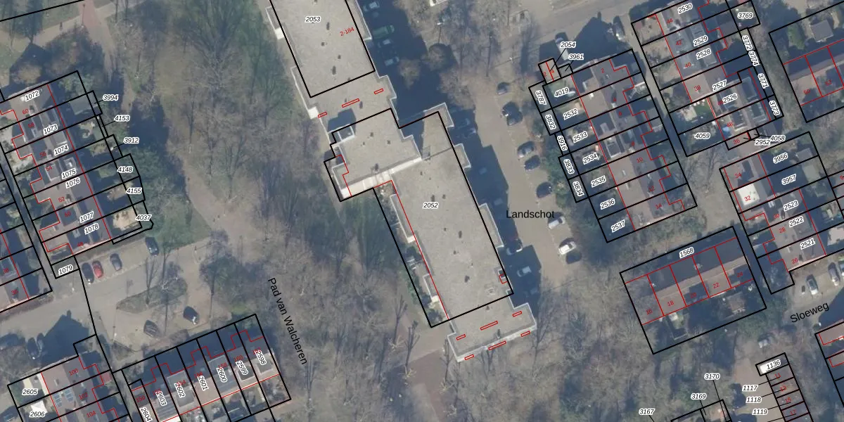 Landschot 34 is gelegen op kadastraal perceel HLM02Y2052. Deze kadastrale aanduiding is uniek en wordt gebruikt door het Kadaster om eigendomsrechten en andere zakelijke rechten vast te leggen. Het perceel maakt onderdeel uit van de kadastrale gemeente Haarlem.