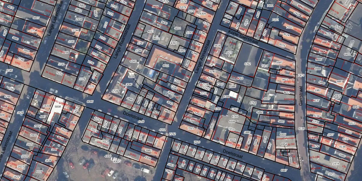 Gebruik de zoekbalk of klik op een perceel voor informatie over de adressen binnen dit perceel.