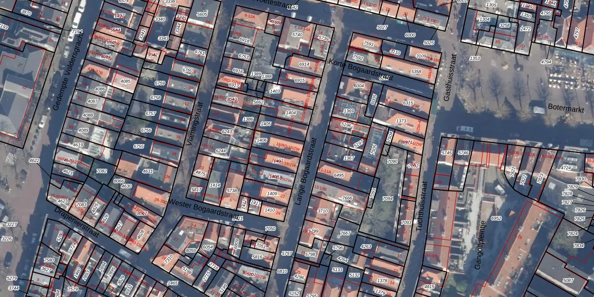 Lange Bogaardstraat 16-ZW is gelegen op kadastraal perceel HLM01C1406. Deze kadastrale aanduiding is uniek en wordt gebruikt door het Kadaster om eigendomsrechten en andere zakelijke rechten vast te leggen. Het perceel maakt onderdeel uit van de kadastrale gemeente Haarlem.