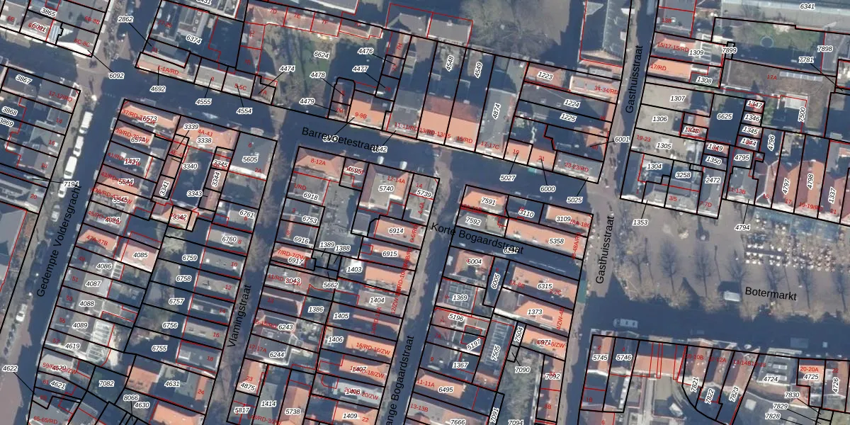 Het perceel waarop Lange Bogaardstraat 4 staat heeft een oppervlakte van 71 m². Dit is een klein perceel. De perceeloppervlakte wordt geregistreerd door het Kadaster. Gedetailleerde informatie over de maten van dit perceel kunt u vinden in het rapport Kadastrale kaart met maatvoering van Lange Bogaardstraat 4.