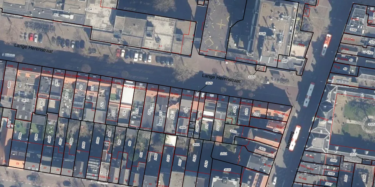 Het perceel waarop Lange Herenstraat 38 staat heeft een oppervlakte van 184 m². Dit is een middelgroot perceel. De perceeloppervlakte wordt geregistreerd door het Kadaster. Gedetailleerde informatie over de maten van dit perceel kunt u vinden in het rapport Kadastrale kaart met maatvoering van Lange Herenstraat 38.
