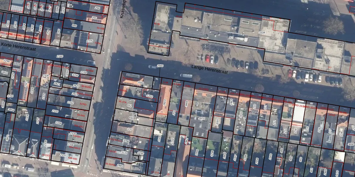 Lange Herenstraat 6-RD is gelegen op kadastraal perceel HLM01B203. Deze kadastrale aanduiding is uniek en wordt gebruikt door het Kadaster om eigendomsrechten en andere zakelijke rechten vast te leggen. Het perceel maakt onderdeel uit van de kadastrale gemeente Haarlem.