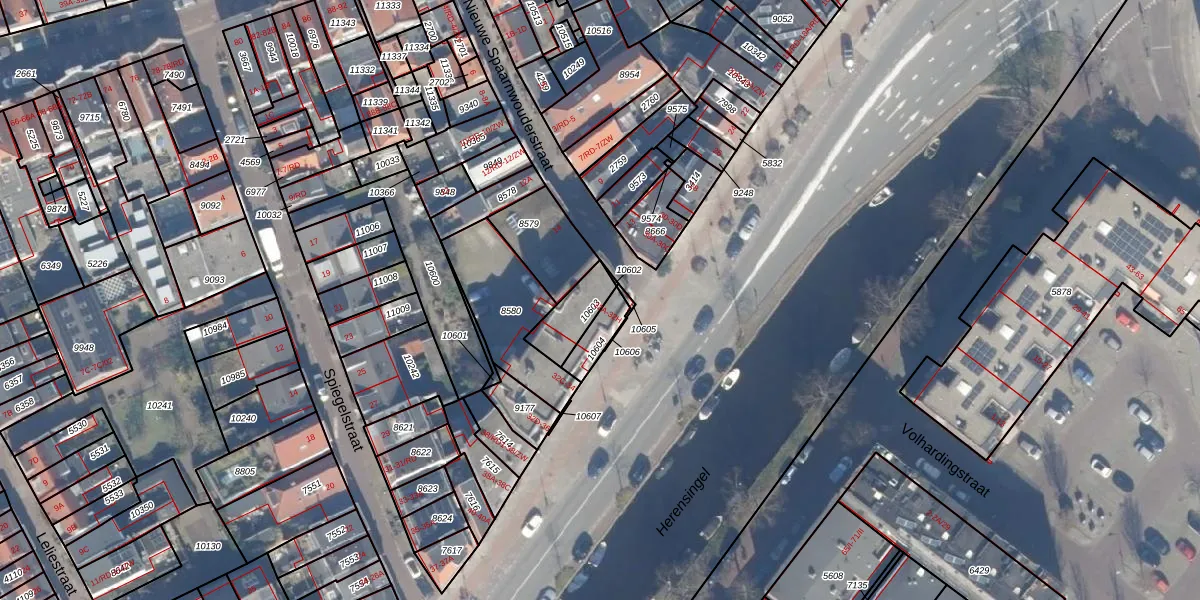 Het adres ligt op het perceel HLM01-D-10603, dat zich in de kadastrale gemeente Haarlem bevindt. Het perceel is 111 m² groot. Dat is kleiner dan de gemiddelde perceeloppervlakte in Haarlem, dat op 328,17 m² ligt. Het grootste perceel in de kadastrale gemeente is 13,9 ha. Het kleinste perceel heeft een oppervlakte van 0 m². Op het perceel zijn 4 adressen aanwezig. In de Basisregistratie Kadaster (BRK) werden de grenzen van het perceel geregistreerd op 15-12-2003.