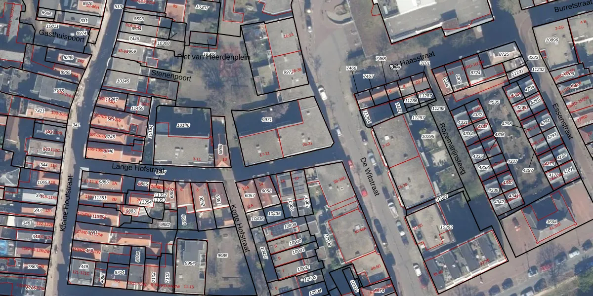 Het perceel waarop Lange Hofstraat 25 staat heeft een oppervlakte van 555 m². Dit is een groot perceel. De perceeloppervlakte wordt geregistreerd door het Kadaster. Gedetailleerde informatie over de maten van dit perceel kunt u vinden in het rapport Kadastrale kaart met maatvoering van Lange Hofstraat 25.
