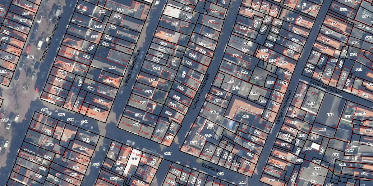 Het perceel waarop Lange Raamstraat 28 staat heeft een oppervlakte van 65 m². Dit is een klein perceel. De perceeloppervlakte wordt geregistreerd door het Kadaster. Gedetailleerde informatie over de maten van dit perceel kunt u vinden in het rapport Kadastrale kaart met maatvoering van Lange Raamstraat 28.