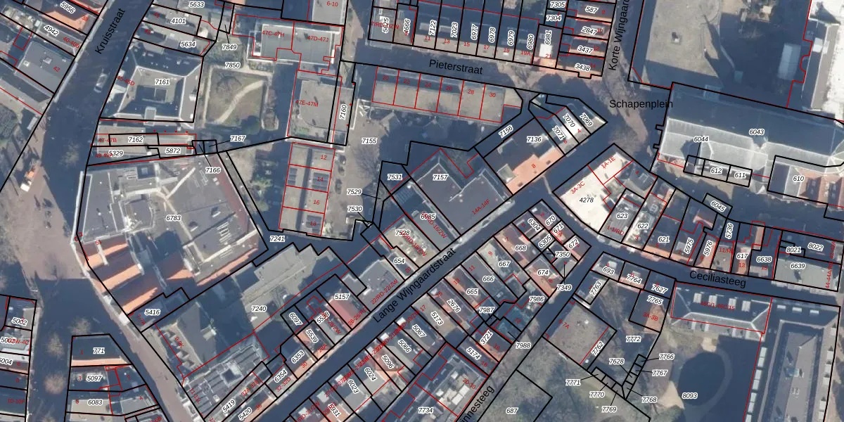 Lange Wijngaardstraat 16-RD is gelegen op kadastraal perceel HLM01C6985. Deze kadastrale aanduiding is uniek en wordt gebruikt door het Kadaster om eigendomsrechten en andere zakelijke rechten vast te leggen. Het perceel maakt onderdeel uit van de kadastrale gemeente Haarlem.