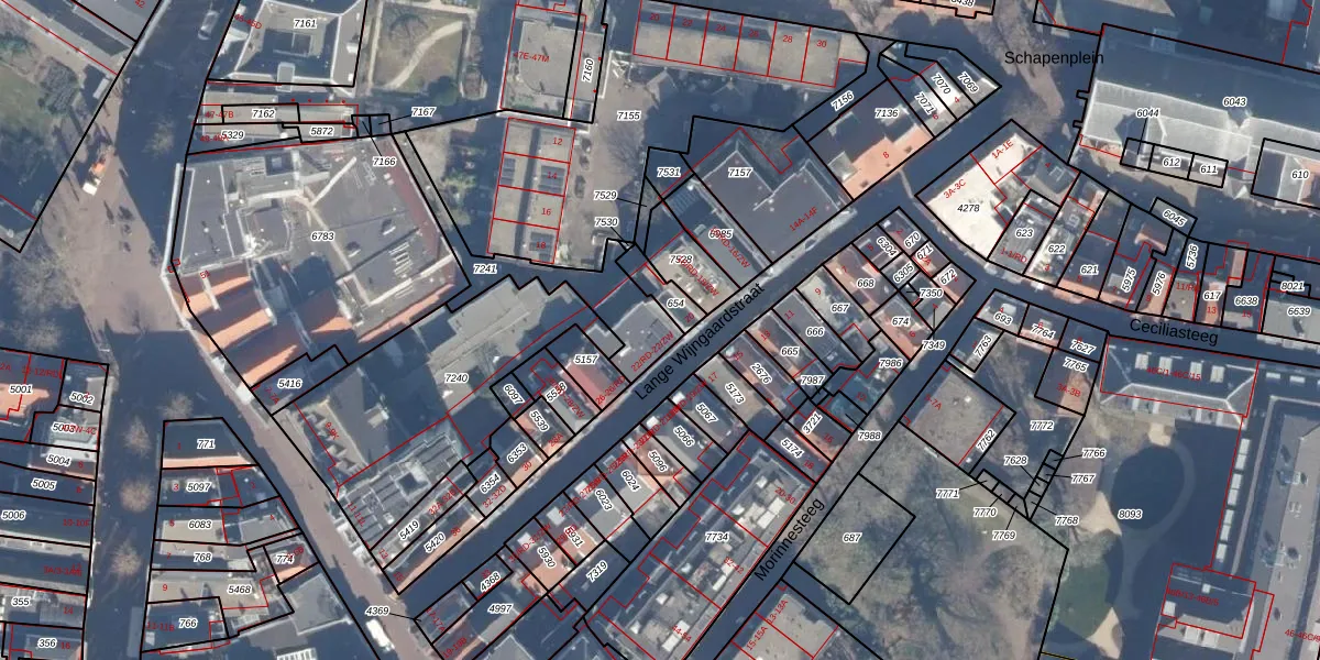 Lange Wijngaardstraat 22-ZW is gelegen op kadastraal perceel HLM01C7241. Deze kadastrale aanduiding is uniek en wordt gebruikt door het Kadaster om eigendomsrechten en andere zakelijke rechten vast te leggen. Het perceel maakt onderdeel uit van de kadastrale gemeente Haarlem.