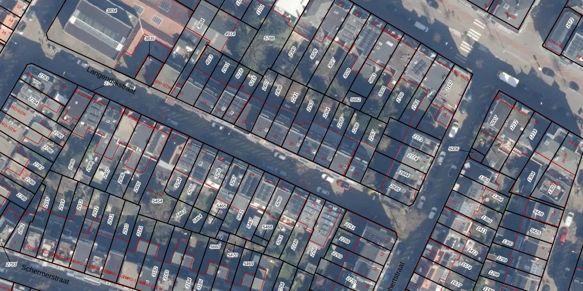 Langendijkstraat 25 is gelegen op kadastraal perceel HLM01A2263. Deze kadastrale aanduiding is uniek en wordt gebruikt door het Kadaster om eigendomsrechten en andere zakelijke rechten vast te leggen. Het perceel maakt onderdeel uit van de kadastrale gemeente Haarlem.