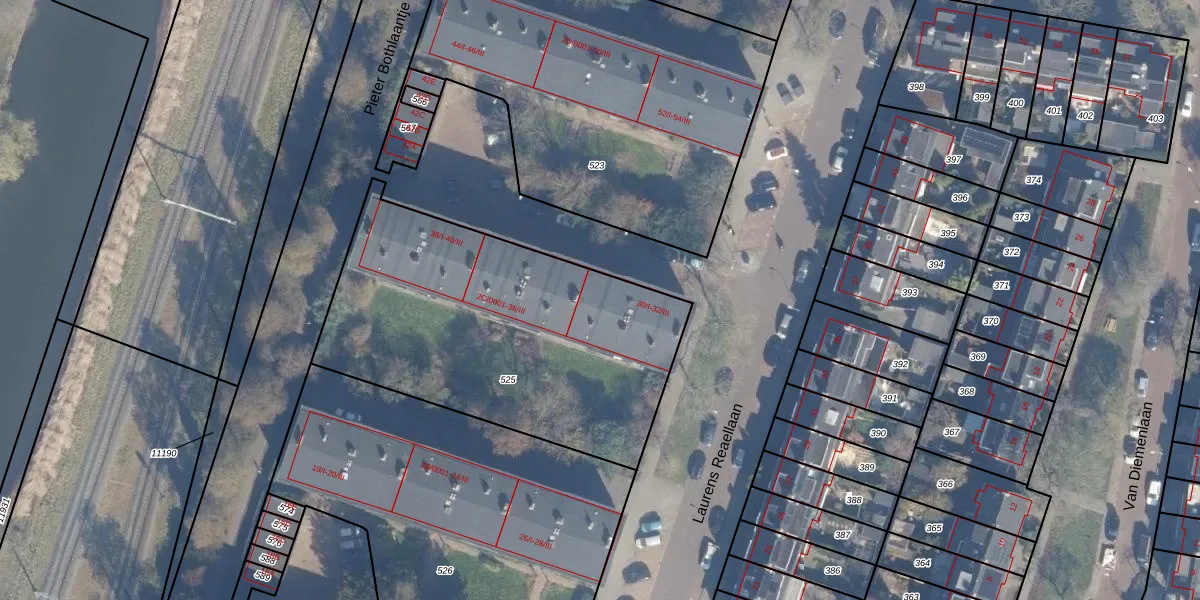 Laurens Reaellaan 32-III is gelegen op kadastraal perceel STN01C525. Deze kadastrale aanduiding is uniek en wordt gebruikt door het Kadaster om eigendomsrechten en andere zakelijke rechten vast te leggen. Het perceel maakt onderdeel uit van de kadastrale gemeente Schoten.