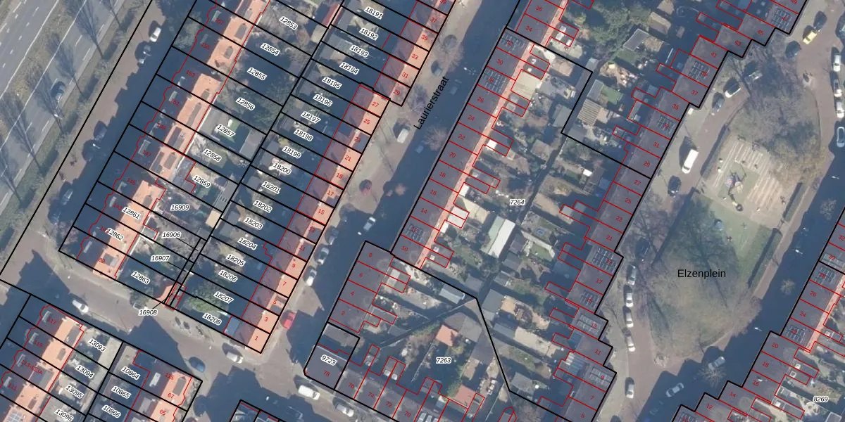 Het perceel waarop Laurierstraat 14 staat heeft een oppervlakte van 3015 m². Dit is een zeer groot perceel. De perceeloppervlakte wordt geregistreerd door het Kadaster. Gedetailleerde informatie over de maten van dit perceel kunt u vinden in het rapport Kadastrale kaart met maatvoering van Laurierstraat 14.