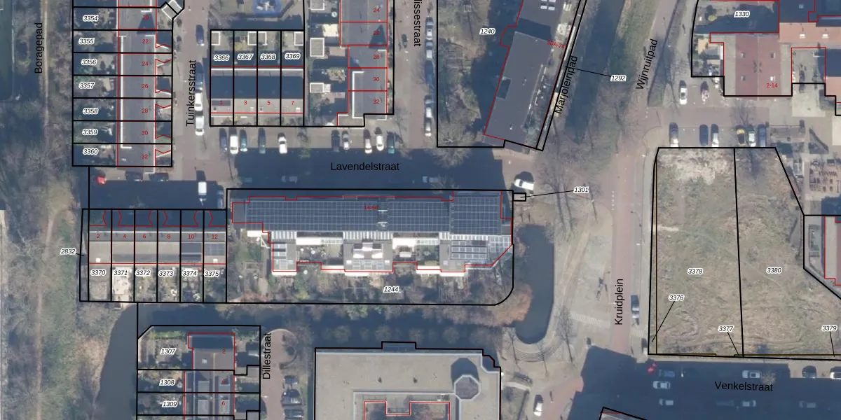 Het perceel waarop Lavendelstraat 56 staat heeft een oppervlakte van 1829 m². Dit is een zeer groot perceel. De perceeloppervlakte wordt geregistreerd door het Kadaster. Gedetailleerde informatie over de maten van dit perceel kunt u vinden in het rapport Kadastrale kaart met maatvoering van Lavendelstraat 56.
