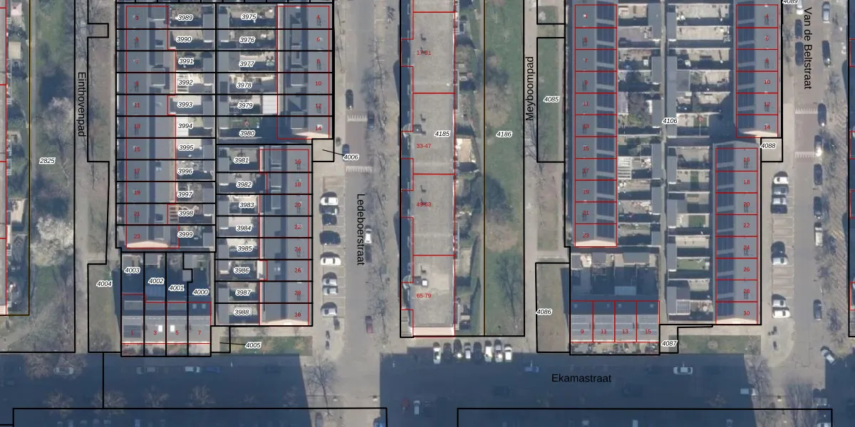 Het perceel waarop Ledeboerstraat 59 staat heeft een oppervlakte van 1853 m². Dit is een zeer groot perceel. De perceeloppervlakte wordt geregistreerd door het Kadaster. Gedetailleerde informatie over de maten van dit perceel kunt u vinden in het rapport Kadastrale kaart met maatvoering van Ledeboerstraat 59.