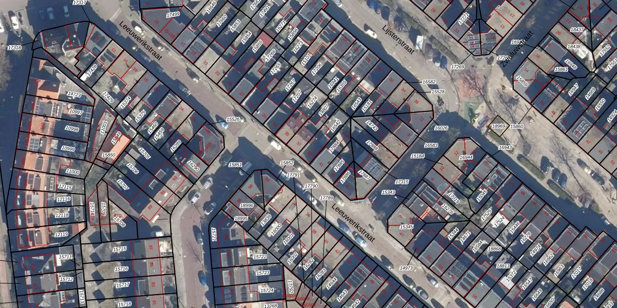 Gebruik de zoekbalk of klik op een perceel voor informatie over de adressen binnen dit perceel.