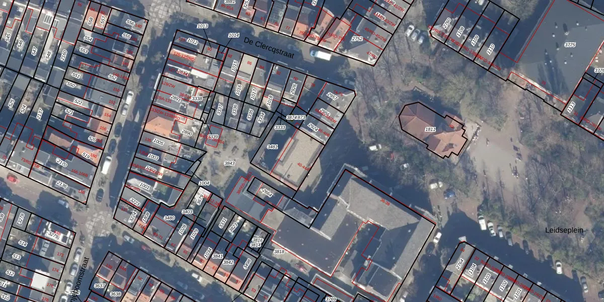 Het perceel waarop Leidseplein 42-A staat heeft een oppervlakte van 323 m². Dit is een groot perceel. De perceeloppervlakte wordt geregistreerd door het Kadaster. Gedetailleerde informatie over de maten van dit perceel kunt u vinden in het rapport Kadastrale kaart met maatvoering van Leidseplein 42-A.