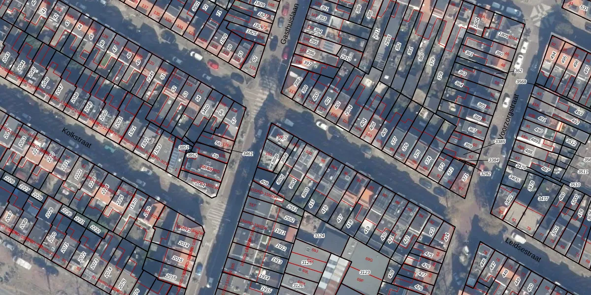 Het perceel waarop Leidsestraat 102 staat heeft een oppervlakte van 61 m². Dit is een klein perceel. De perceeloppervlakte wordt geregistreerd door het Kadaster. Gedetailleerde informatie over de maten van dit perceel kunt u vinden in het rapport Kadastrale kaart met maatvoering van Leidsestraat 102.