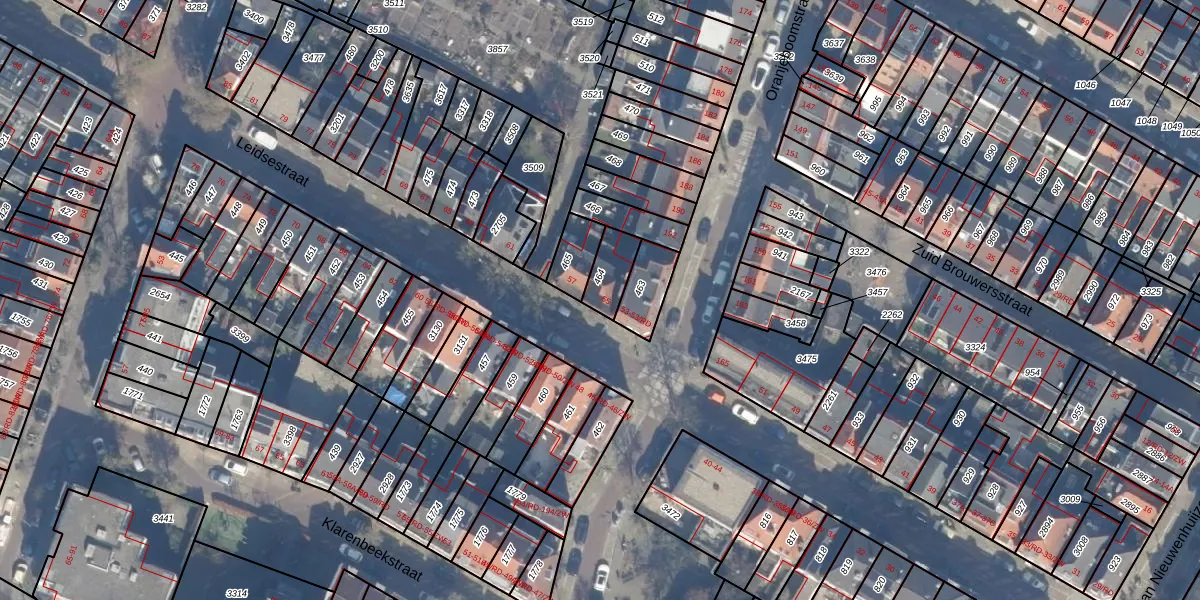 Het perceel waarop Leidsestraat 55 staat heeft een oppervlakte van 83 m². Dit is een klein perceel. De perceeloppervlakte wordt geregistreerd door het Kadaster. Gedetailleerde informatie over de maten van dit perceel kunt u vinden in het rapport Kadastrale kaart met maatvoering van Leidsestraat 55.