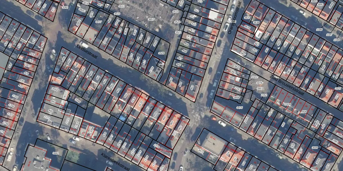Het perceel waarop Leidsestraat 57 staat heeft een oppervlakte van 90 m². Dit is een klein perceel. De perceeloppervlakte wordt geregistreerd door het Kadaster. Gedetailleerde informatie over de maten van dit perceel kunt u vinden in het rapport Kadastrale kaart met maatvoering van Leidsestraat 57.