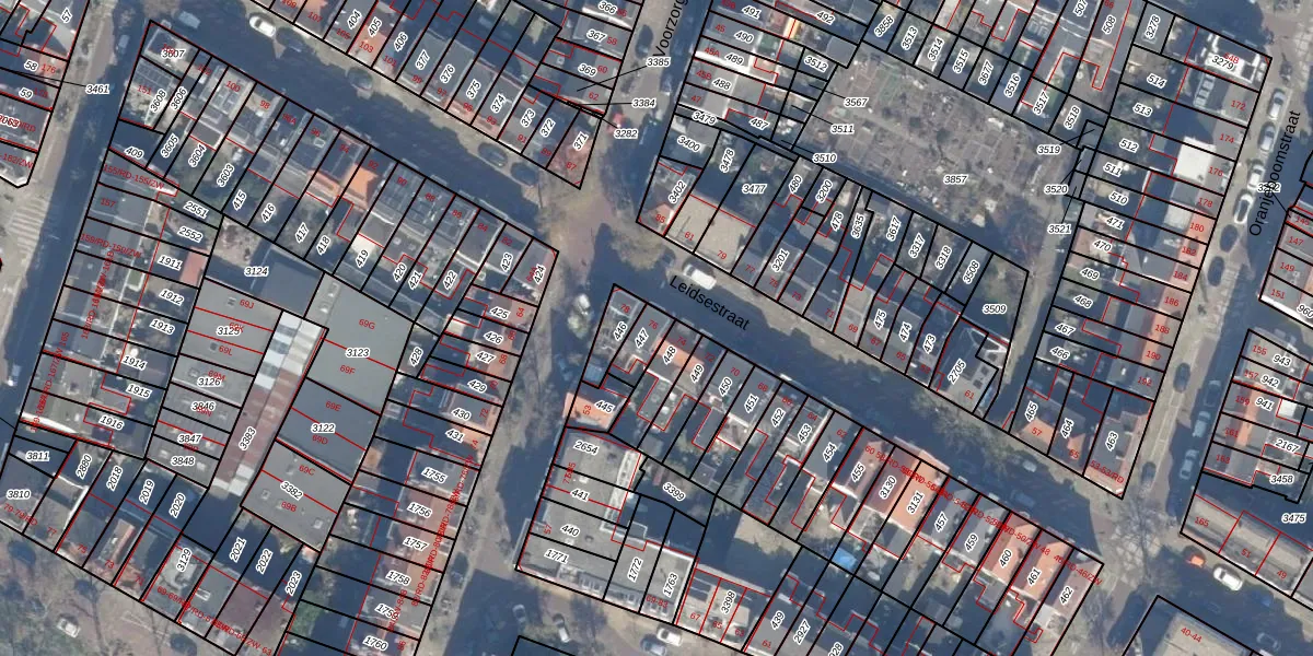 Het perceel waarop Leidsestraat 76 staat heeft een oppervlakte van 64 m². Dit is een klein perceel. De perceeloppervlakte wordt geregistreerd door het Kadaster. Gedetailleerde informatie over de maten van dit perceel kunt u vinden in het rapport Kadastrale kaart met maatvoering van Leidsestraat 76.