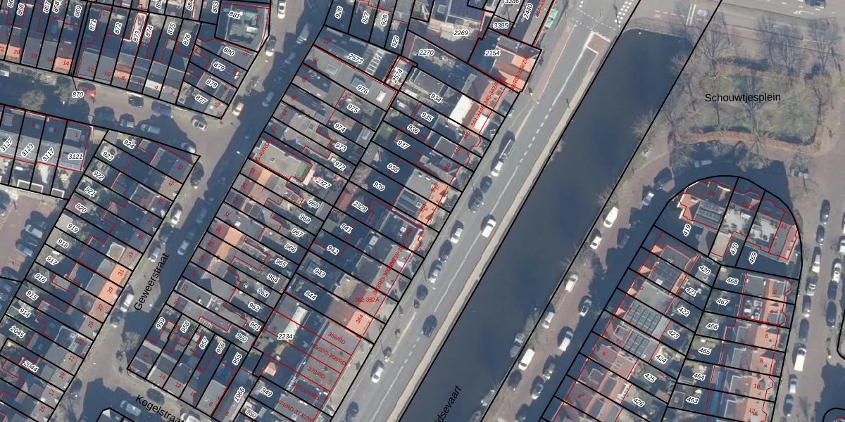 Leidsevaart 354 is gelegen op kadastraal perceel HLM02S939. Deze kadastrale aanduiding is uniek en wordt gebruikt door het Kadaster om eigendomsrechten en andere zakelijke rechten vast te leggen. Het perceel maakt onderdeel uit van de kadastrale gemeente Haarlem.