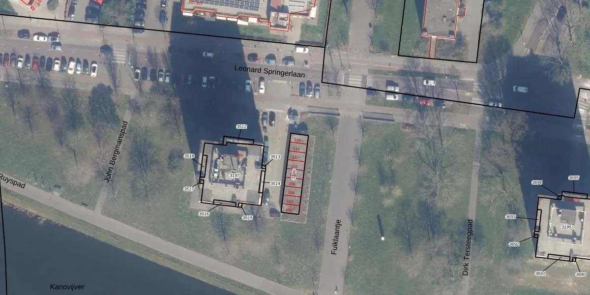 Leonard Springerlaan 114 is gelegen op kadastraal perceel HLM02P3196. Deze kadastrale aanduiding is uniek en wordt gebruikt door het Kadaster om eigendomsrechten en andere zakelijke rechten vast te leggen. Het perceel maakt onderdeel uit van de kadastrale gemeente Haarlem.