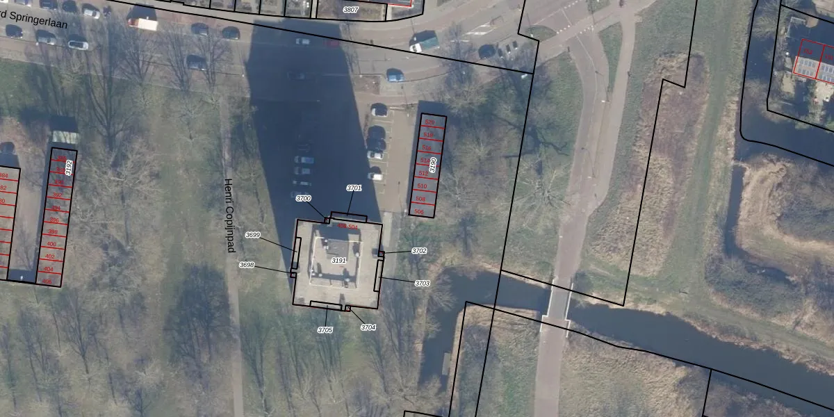 Leonard Springerlaan 506 is gelegen op kadastraal perceel HLM02P3190. Deze kadastrale aanduiding is uniek en wordt gebruikt door het Kadaster om eigendomsrechten en andere zakelijke rechten vast te leggen. Het perceel maakt onderdeel uit van de kadastrale gemeente Haarlem.