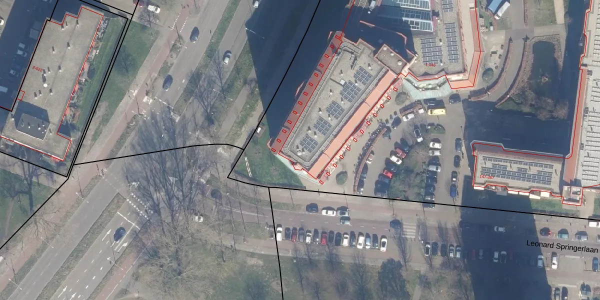 Het perceel waarop Leonard Springerlaan 89 staat heeft een oppervlakte van 1,5 ha. Dit is een zeer groot perceel. De perceeloppervlakte wordt geregistreerd door het Kadaster. Gedetailleerde informatie over de maten van dit perceel kunt u vinden in het rapport Kadastrale kaart met maatvoering van Leonard Springerlaan 89.