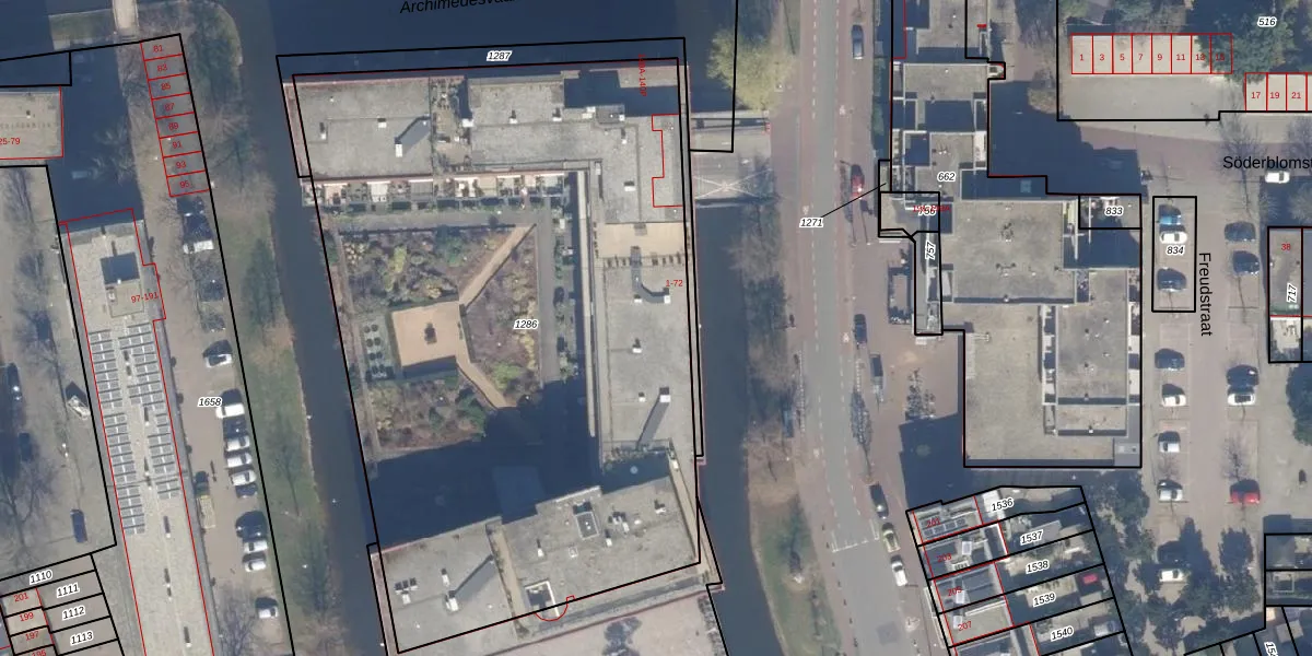 Het perceel waarop Leonardo da Vinciplein 37 staat heeft een oppervlakte van 4397 m². Dit is een zeer groot perceel. De perceeloppervlakte wordt geregistreerd door het Kadaster. Gedetailleerde informatie over de maten van dit perceel kunt u vinden in het rapport Kadastrale kaart met maatvoering van Leonardo da Vinciplein 37.