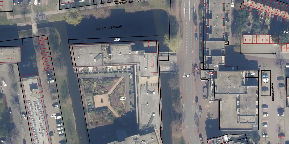 Het perceel waarop Leonardo da Vinciplein 40 staat heeft een oppervlakte van 4397 m². Dit is een zeer groot perceel. De perceeloppervlakte wordt geregistreerd door het Kadaster. Gedetailleerde informatie over de maten van dit perceel kunt u vinden in het rapport Kadastrale kaart met maatvoering van Leonardo da Vinciplein 40.