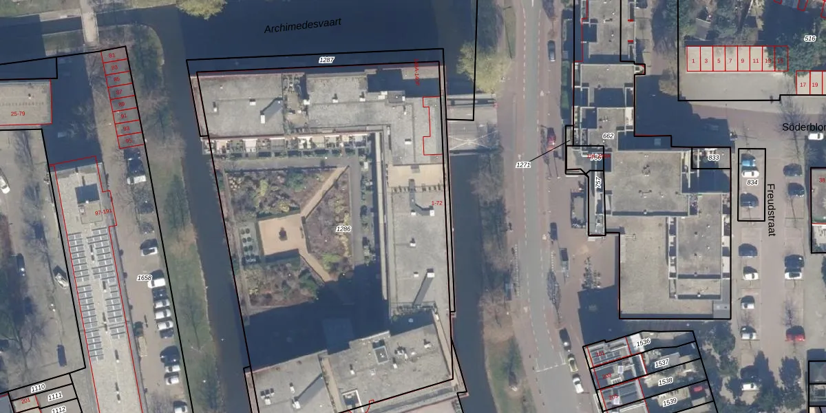 Het perceel waarop Leonardo da Vinciplein 59 staat heeft een oppervlakte van 4397 m². Dit is een zeer groot perceel. De perceeloppervlakte wordt geregistreerd door het Kadaster. Gedetailleerde informatie over de maten van dit perceel kunt u vinden in het rapport Kadastrale kaart met maatvoering van Leonardo da Vinciplein 59.