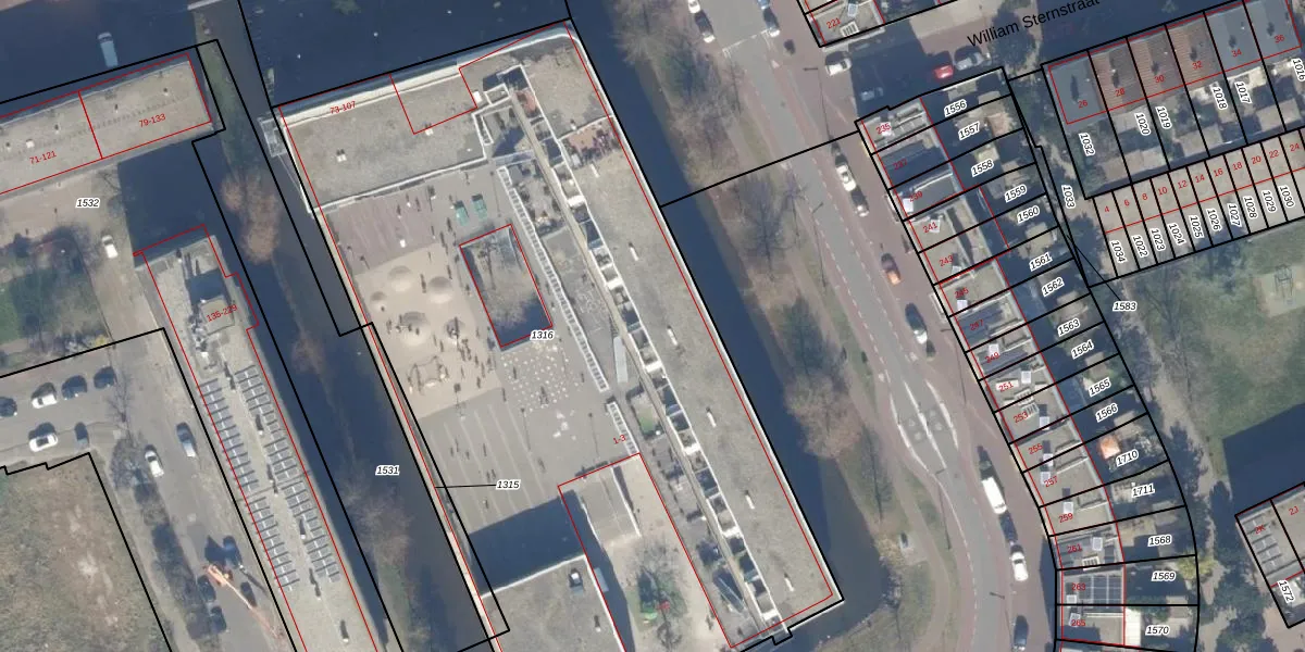 Het adres ligt op het perceel HLM02-X-1316, dat zich in de kadastrale gemeente Haarlem bevindt. De oppervlakte van het perceel is 5040 m². Dat is groter dan gemiddeld in Haarlem, waar de gemiddelde perceeloppervlakte op 1125,45 m² ligt. De grootste perceeloppervlakte in de kadastrale gemeente is 46,4 ha. De kleinste oppervlakte bedraagt 0 m². Er zijn 40 adressen aanwezig op het perceel. De huidige grenzen van het perceel zijn digitaal in de Basisregistratie Kadaster (BRK) geregistreerd op 20-12-2010.