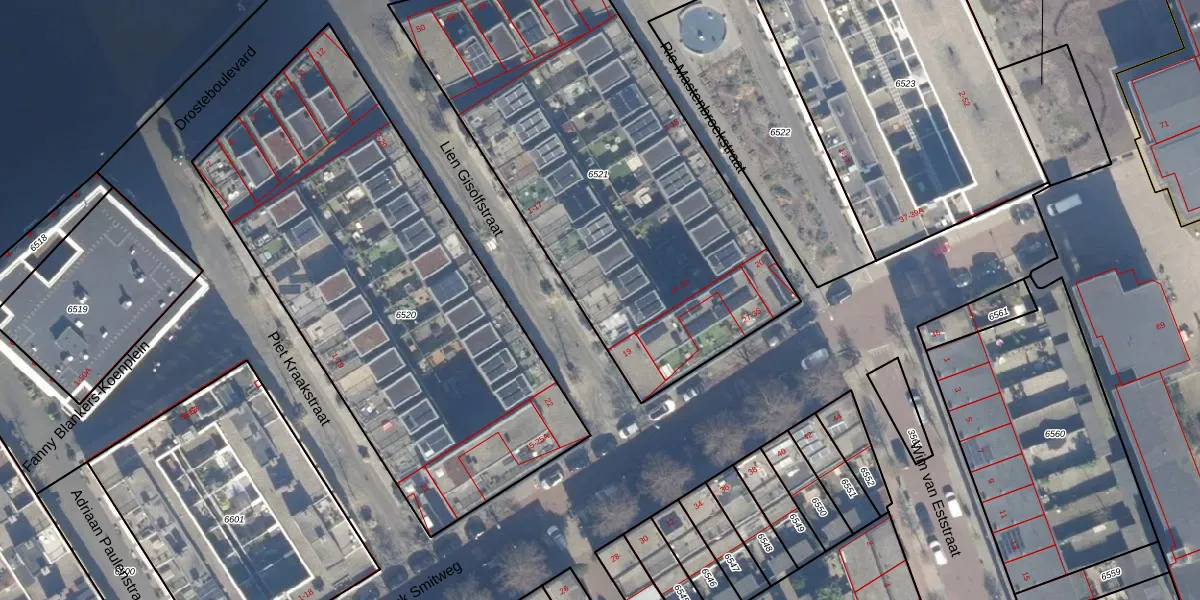 Lien Gisolfstraat 15 is gelegen op kadastraal perceel HLM01E6521. Deze kadastrale aanduiding is uniek en wordt gebruikt door het Kadaster om eigendomsrechten en andere zakelijke rechten vast te leggen. Het perceel maakt onderdeel uit van de kadastrale gemeente Haarlem.