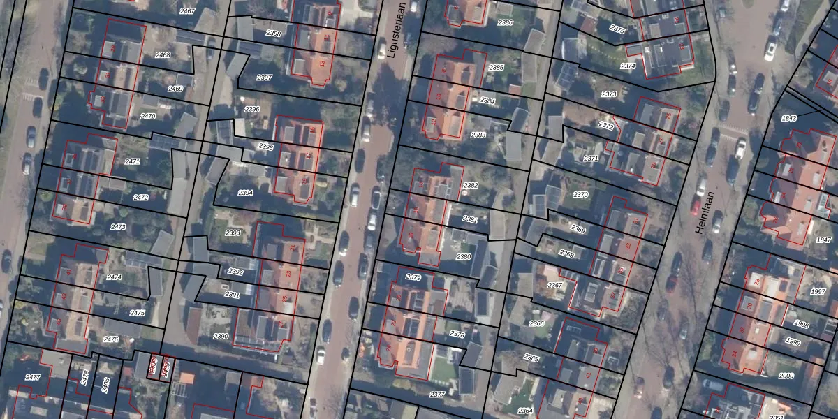 Ligusterlaan 16 is gelegen op kadastraal perceel HLM02T2381. Deze kadastrale aanduiding is uniek en wordt gebruikt door het Kadaster om eigendomsrechten en andere zakelijke rechten vast te leggen. Het perceel maakt onderdeel uit van de kadastrale gemeente Haarlem.