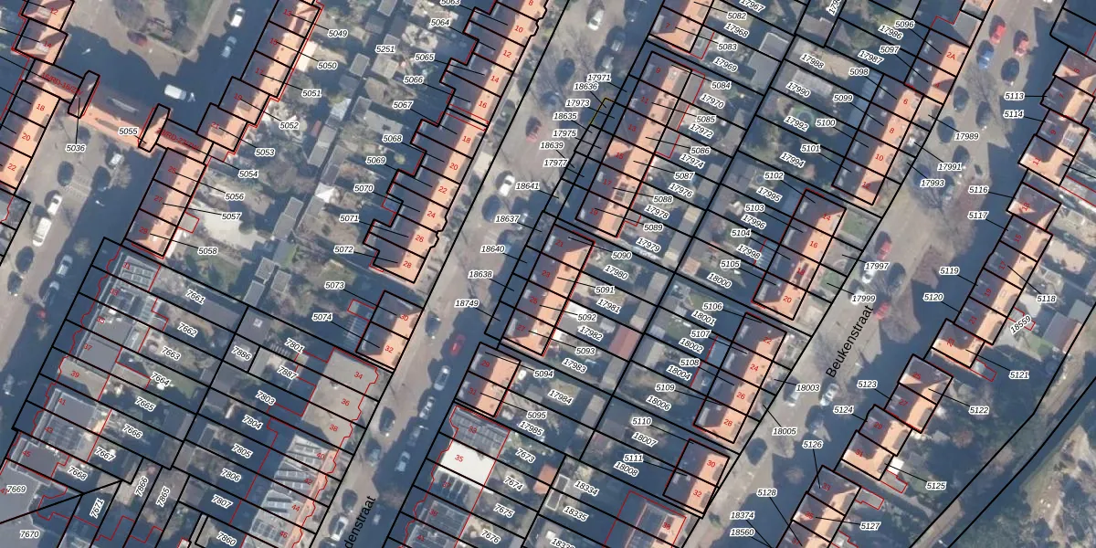 Het perceel waarop Lindenstraat 23 staat heeft een oppervlakte van 45 m². Dit is een klein perceel. De perceeloppervlakte wordt geregistreerd door het Kadaster. Gedetailleerde informatie over de maten van dit perceel kunt u vinden in het rapport Kadastrale kaart met maatvoering van Lindenstraat 23.