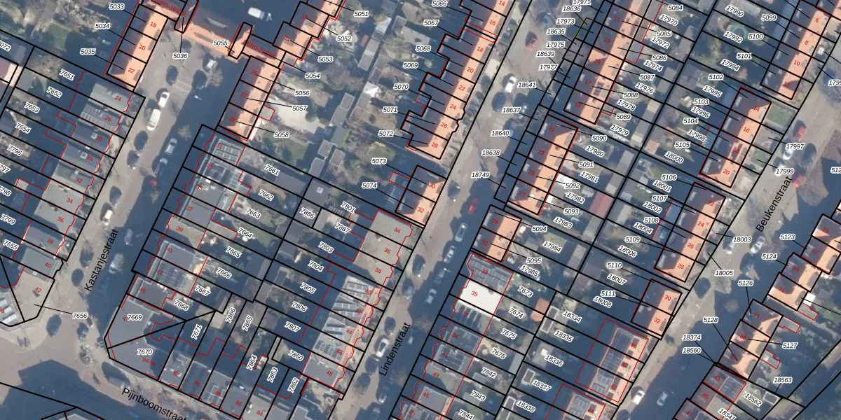 Het perceel waarop Lindenstraat 32 staat heeft een oppervlakte van 46 m². Dit is een klein perceel. De perceeloppervlakte wordt geregistreerd door het Kadaster. Gedetailleerde informatie over de maten van dit perceel kunt u vinden in het rapport Kadastrale kaart met maatvoering van Lindenstraat 32.